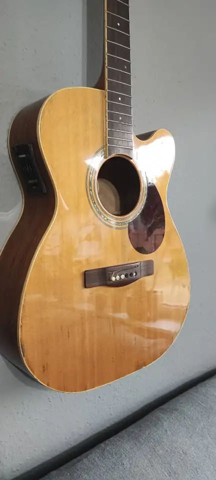 Eladó Adam Black 0-7CE elektoakuszikus gitár! A hangszer ilyen állapotban került hozzám, de sajnos nincs időm rá, hogy rendbe rakjam, ezért inkább megválnék tőle, esetleg cserélném.Van jó pár esztétikai hibája, illetve hiányzik a felső nyerge és a húrlába. Nincs rajta repedés, törés, nyaka bundjai rendben vannak, akárcsak a Fishman elektronikája.