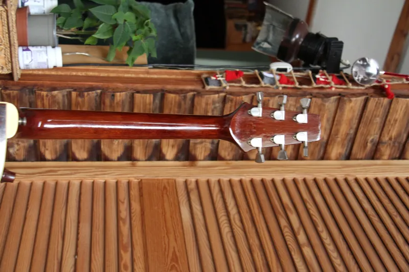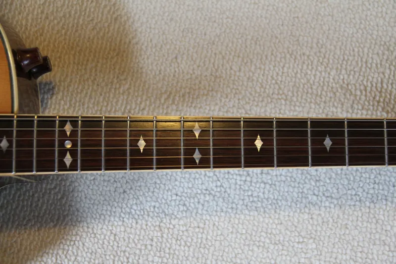 Domború fedlappal és hátlappal készült piezzo elektromos gitár, jazzgitár. A gitár nyakán a fej alatti repedés szakszerűen javítva lett, ahogy ez a képeken látható. A nyak új bundokat és új 12-es Thomastic köszörült húrokat kapott. A húrok magassága a 12. pozícióban: E1: 1,25mm, E6: 1,5-1,75mm. A gitár fedőlapja lucfenyőből, oldal és hátlapja rózsafából, a nyak mahagóni, a fogólap rózsafából készült. A hangerő és hangszín gombokkal vezérelt aktív piezzo elektronika eredeti, gyárilag szerelt. A gitárnak akusztikusan tiszta, kiegyenlített, a hozzáadott Kent Armstrong hangszedővel meleg, telt jazz hangzása van.Kipróbálható, átvehető Szentendrén, tok nincs a gitárhoz, ezért nem szívesen postázom.