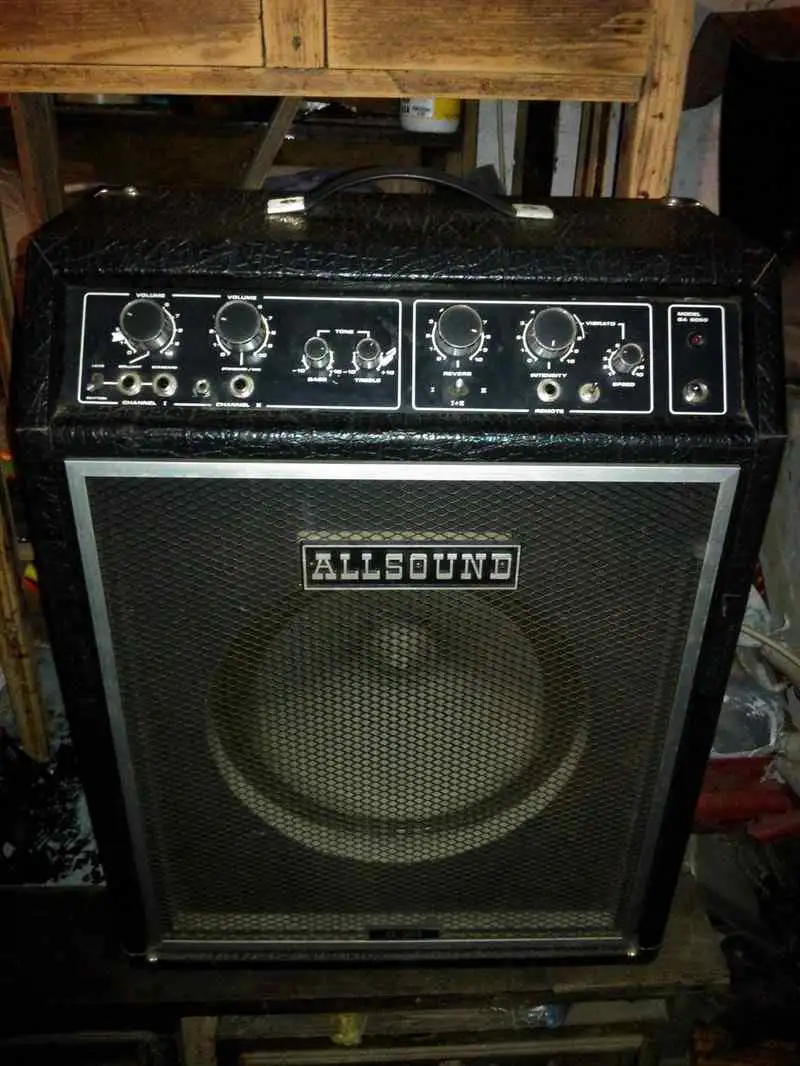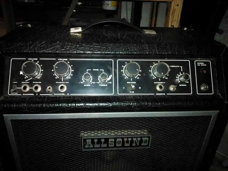 huendeskesAnyagi okok miatt eladó ez a gyönyörű állapotban lévő vintage gitárkombót. Szép meleg hangja van a speciális 12˝-os Allsound 100w-os hangszórónak és a hagyományos, 70-es évekbeli túlméretezett technológiának köszönhetően. Két külön hangerő szabályozóval ellátott bemenet, reverb és vibrato található benne. Méretei: 60x44x24 cm, súlya 21 kg!