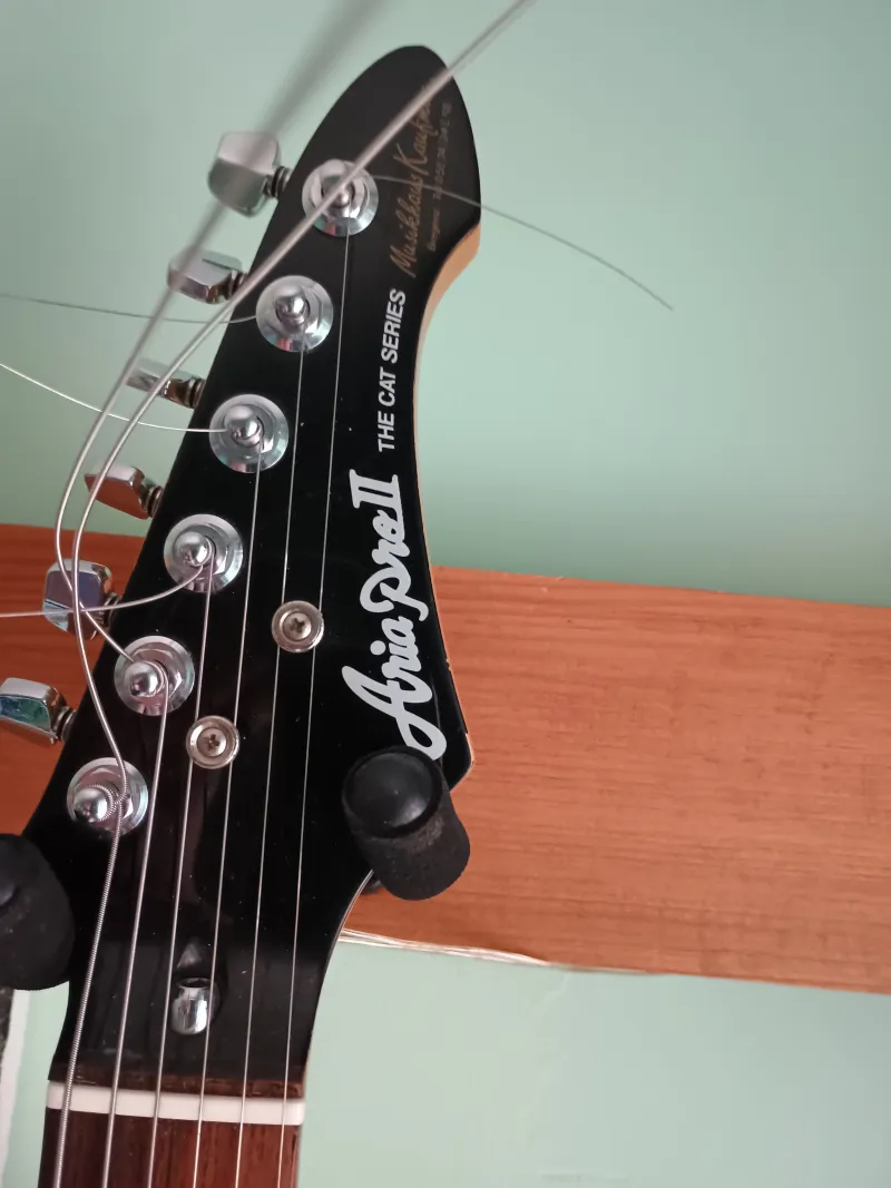 Aria pro II The cat series 1987ből , made in Korea , eredeti hangszedők-kulcsok..minden kivéve a koptatón a fólia és a nagy acélblokk a tremolónál. Korrekt hang felezhető Humbucker gyári push-pull potivalKapcsolódó hangszerteszt