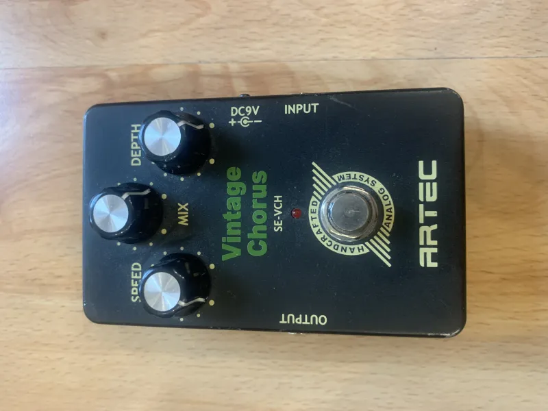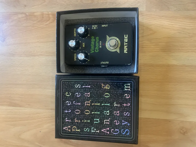 Eladó Artec SE-VCH vintage chorus pedál. Külsőleg kicsit kopott, de kifogástalanul működik, jelenleg is használatban van. Dobozával együtt.Személyesen átvehető Óbudán vagy foxpost a vevő terhére. Csere köszönöm nem érdekel.