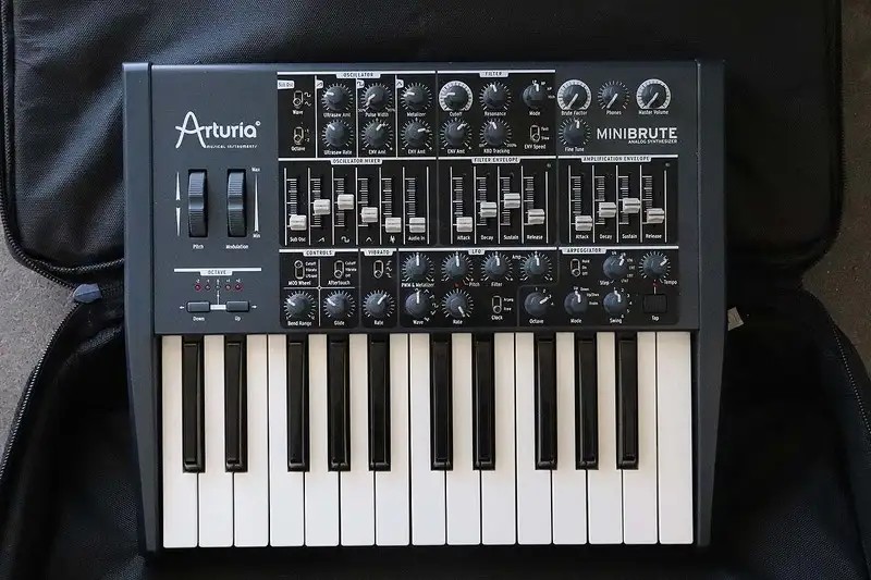 25 note semi-weighted keyboard with aftertouch (assignable to Cutoff or Vibrato amount)