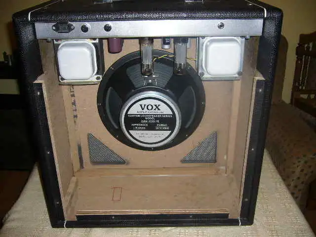 Egyedileg, igényesen -forléces szereléssel- elkészitett és gondosan bemért új,(csak próbaüzem volt) 60W-os full csöves gitárkombó (2xECC83,1xECC808,2xEL34), 12˝-os VOX hangszóróval, gyári trafókkal, új alkatrészekkel, szinpadképesen. Két külön csatornabemenet, csatornánként Volume,Bass,Treble és Standby.