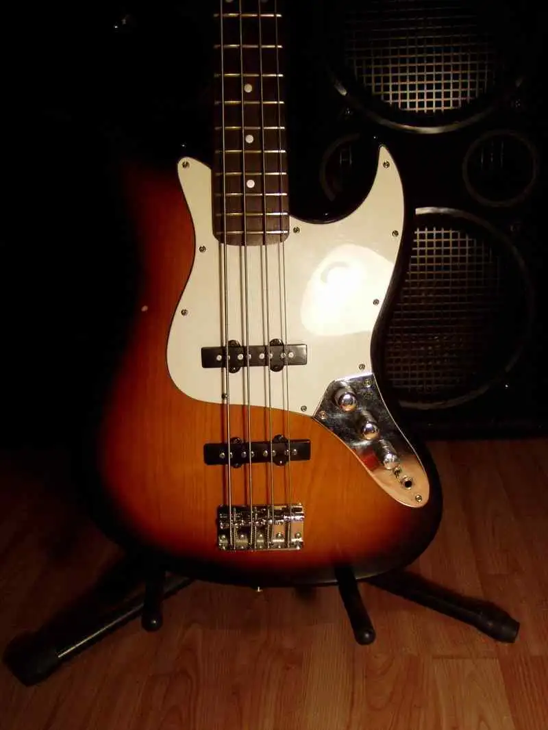 huendeskesEladó a képen látható Baltimore Jazz Bass, egy rockbag puhatokkal együtt. A hangszer 2 éves, első gazdája vagyok. Egy kicsit karcos, illetve a képen látható, hogy a festés is egy helyen lepattant. A gitár ki lett egészítve egy soros/párhuzamos kapcsólóval, így a hangszedők átválthatóak a két mód között. Jelenleg DAddario húrok vannak rajta. A hangszer kezdő játékosnak arra teljesen jó, hogy megtanuljon rajta játszani. Csere nem érdekel! A hangszer átvehető Békés megyében, illetve akár Budapestre is el tudom juttatni.