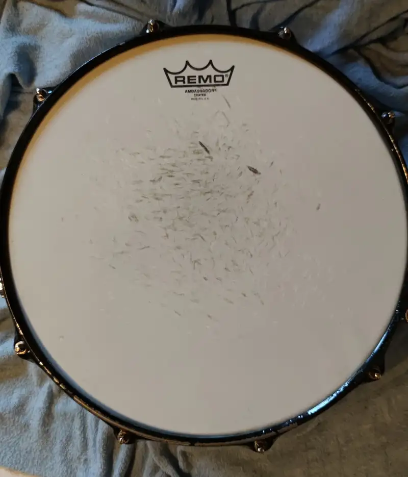 Olyan állapotban, ahogy a képeken van. Én vagyok a második tulaja vásárláskor újra lett bőrözve a 3 tam és a pergő (a pergő nem volt a szett része, máshonnan lett vásárolva így a márkát se tudom), a lábdob nem lett, az jó állapotban volt. Az előző tulaj elszakította a lábdob első bőrét így kicserélte a másik dobfelszerelése tartalék első bőrére, így (ahogy a képeken látszik) nem gyári és nem ugyanaz a márka.