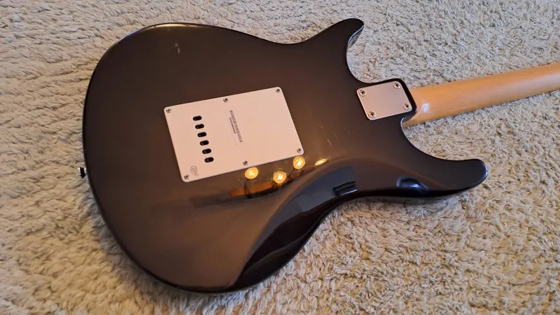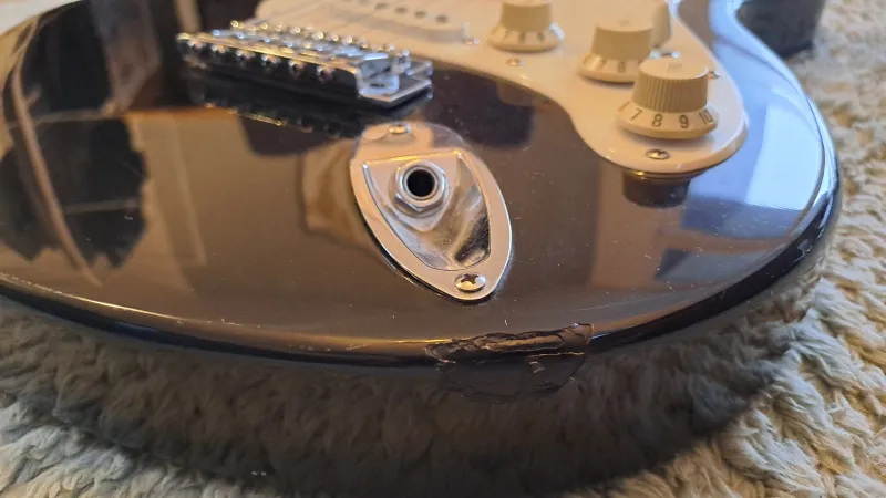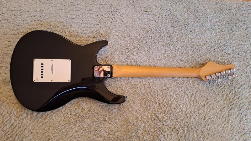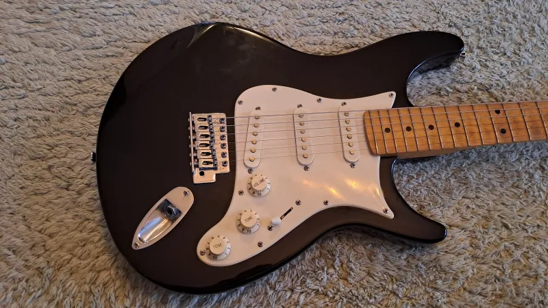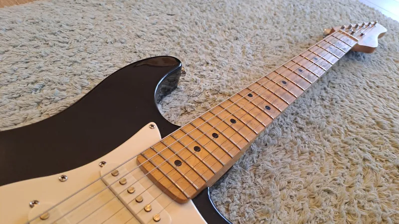 Néhány éve hangszerész által bundcsiszoláson és beállításon esett át (Hurgi - Árkádia Hangszerbolt), az ő véleménye szerint ez egy teljesen használható hangszer. Azóta csak ritkán, otthoni `pengetésre` volt használatban. A hangszer használtan került hozzám, jelenleg elektronikailag és bundokat tekintve is kifogástalan állapotú. Egy korábbi tulaj által okozott, azóta újrafestett (javított) festék-sérülés van rajta a jack-aljzat mellett (lásd a fotókon), valamint a fogólapon láthatóak rajta használatból eredő kopások. Meglepően jól játszható, kényelmes, jellegzetes strat hangú hangszer, kedvező árfekvésben. Kérésre videót és hangmintát szívesen küldök róla. A megadott ár nem alkuképes.