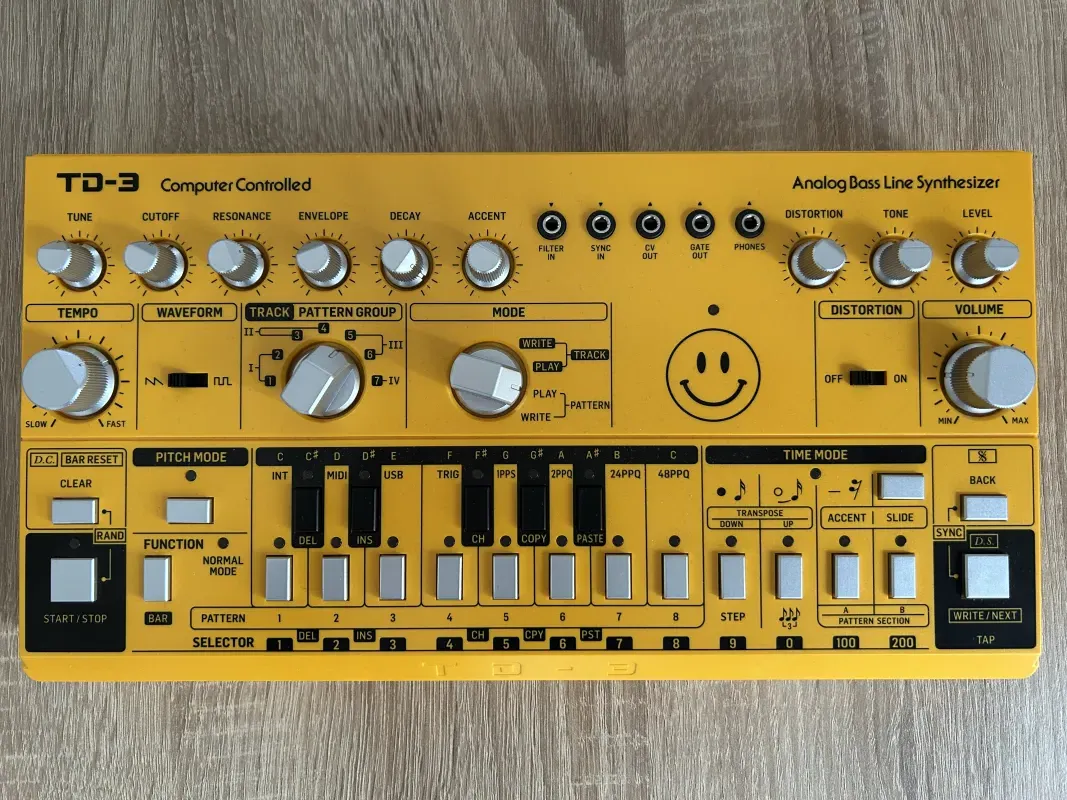 Sárga Behringer TD-3 eladó, gyári tápegységgel és eredeti dobozzal (szivacsok nélkül).Kapcsolódó hangszerteszt