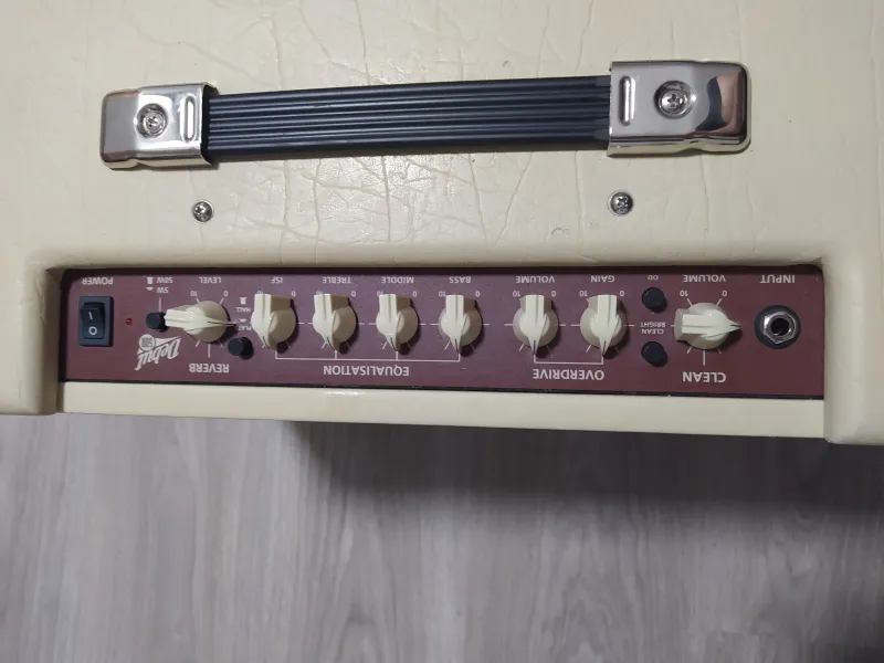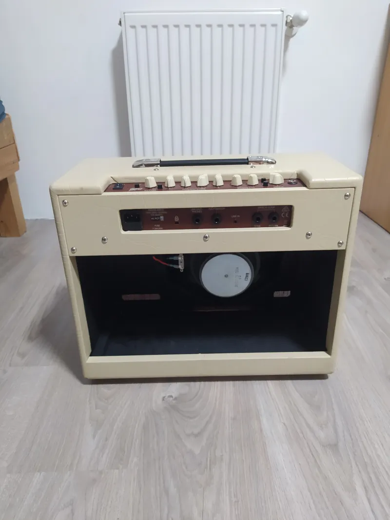 Egy kétállású teljesítménykapcsolója is van: 5Watt igen praktikus kisebb jammelésekhez, otthonra, de az 50Watt-os állásban simán felveszi a versenyt akár egy akusztik dobossal.