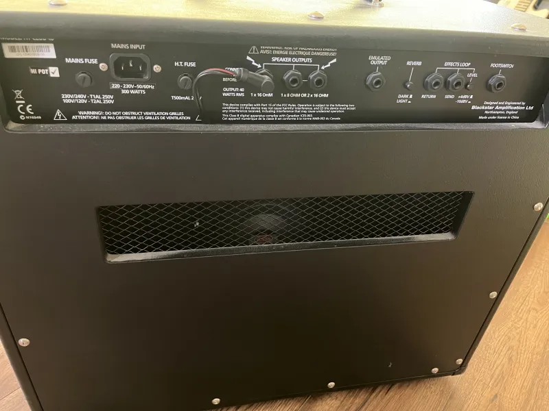 Blackstar HT CLUB 40gitárkombó: 40 Watt (8/16 Ohm) teljesítmény, 2 x ECC83 és 2 x EL34 csövek, 1 x 12˝ Celestion hangszóró, 2 lábkapcsolható csatorna, hangszínezés: mély, közép, magas, ISF forgó potméter (angol/amerikai karakter szabályzó), 3-sávos EQ szabályzó, hangerő, 2 x Voice reverb (Dark/Light), jelszintkapcsolós effekthurok, hangszóróemulált vonal kimenet, tartozék: lábkapcsoló