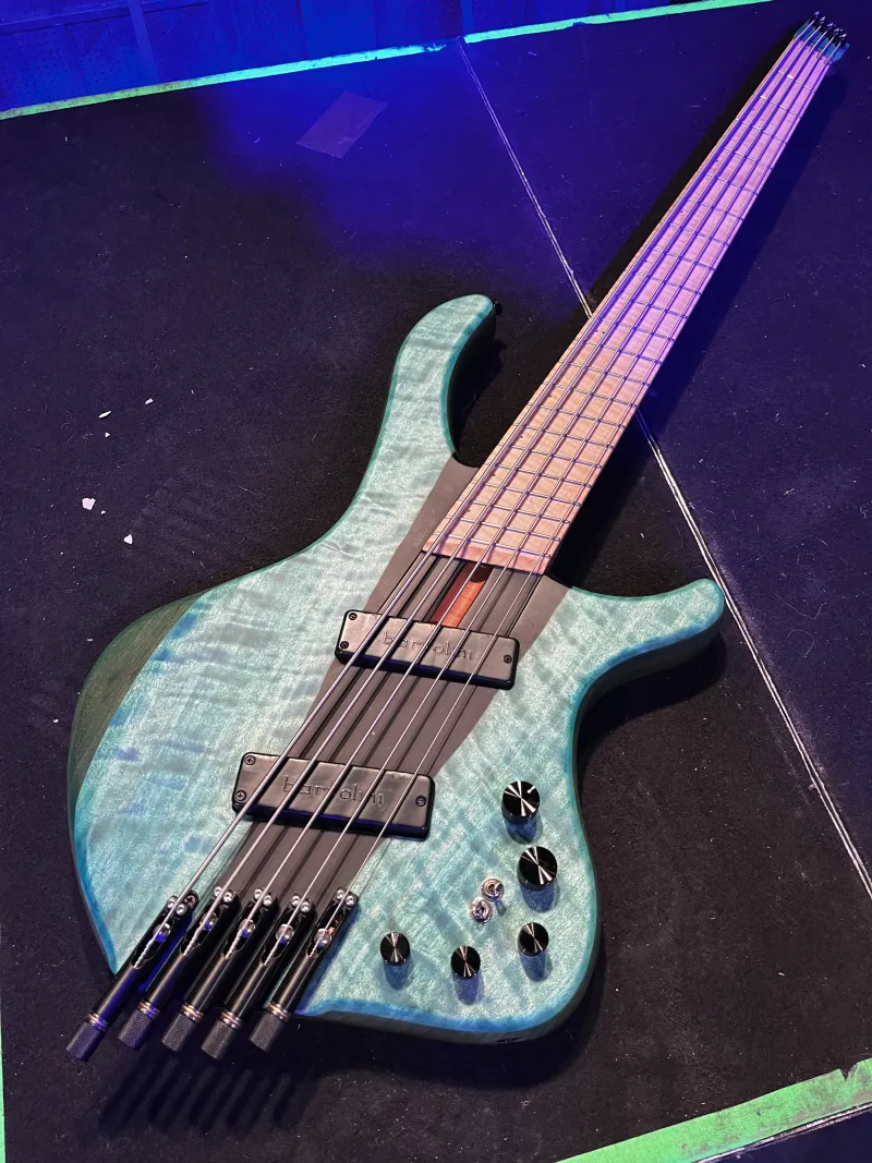 Eladó Blasius KT 5 headless basszusgitár.Bartolini humbucker pickupok , mindkettőt külön-külön lehet kapcsolni soros illetve párhuzamos állásba.