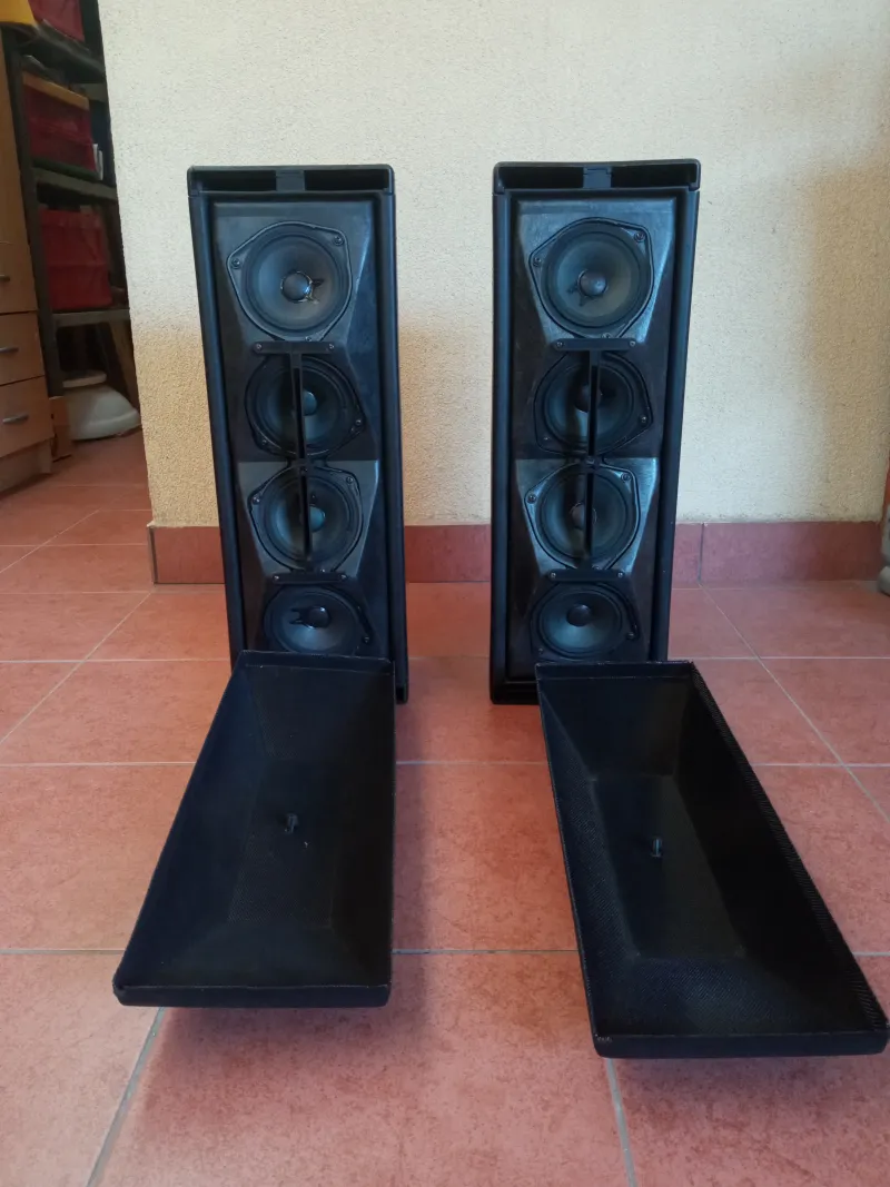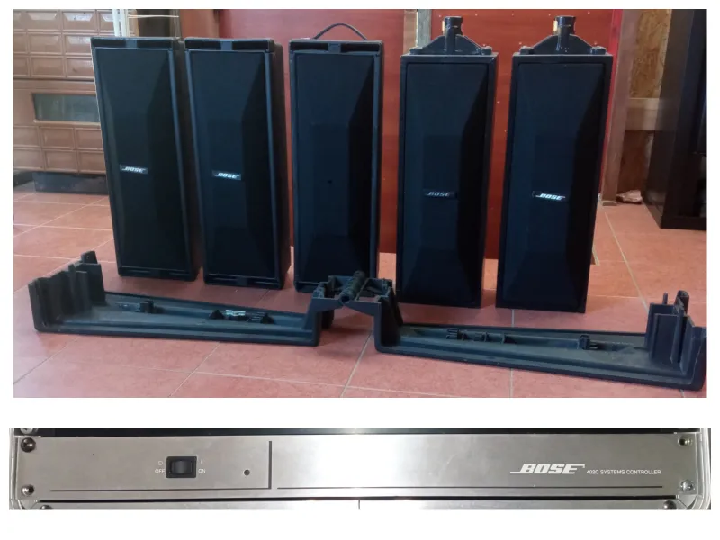 Eladóak a képeken látható Bose 402 hangfalak (5 db), és a Bose 402C rendszerprocesszoruk. A ládák és a processzor is tesztelt, hangképben, működésben és külsőleg is rendben vannak. 2 hangfal hüvellyel ellátott, másik kettőhöz műanyag hordtok is tartozik.Szállítás