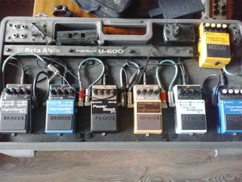 Hagyatékból származó effekt-sor. A boss effektek mellet van benne egy Fender is