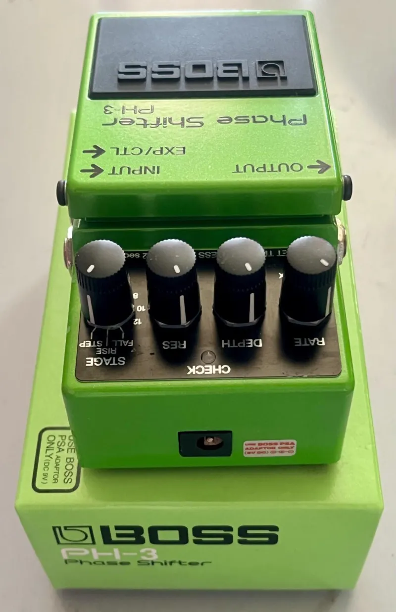 Eladó Boss PH-3 Phase Shifter effektpedál, alján Velcro.A Boss PH-3 egy modern phaser effekt Tap tempo szinkronnal. Többféle típusú phaser effekt elérhető vele a Vintage-től a modernig. Külön ˝Rise˝ és ˝Fall˝ mód, mely különleges egyirányú fáziseltolást eredményez. Külső expression pedál csatlakoztatásával (EV-5) valós-időben állítható a Rate, Filter vagy Tempo paraméter. Tap tempo funkció is elérhető.