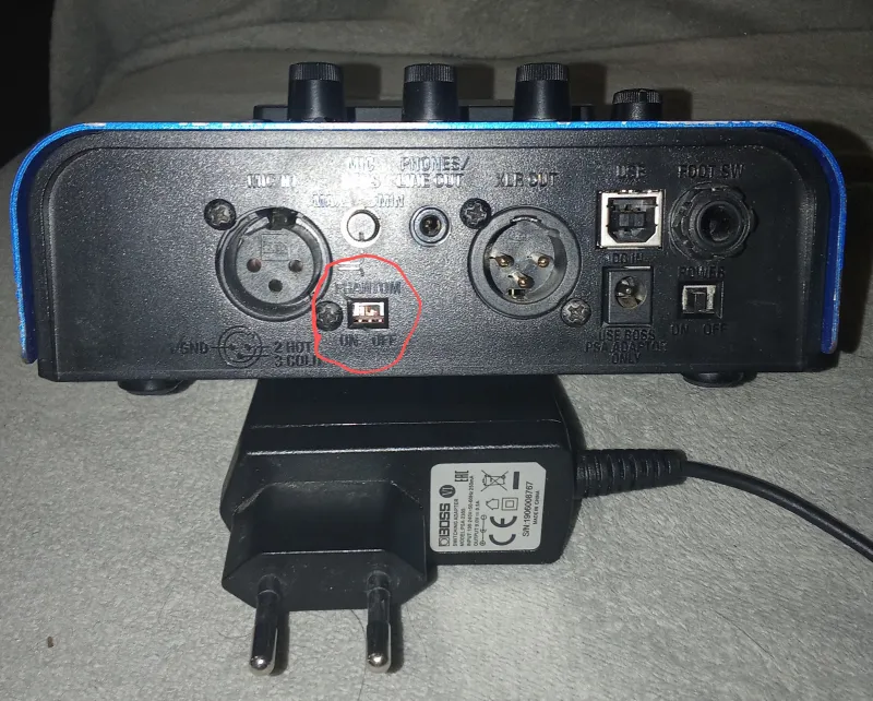 A ˝phantomtáp˝ kapcsoló sajnos letört... Jelen állapotában csak dinamikus mikrofonnal használható.Minden más funkció hibátlanul működik.Az adaptert adom vele.Postázom is ha kell.Szállítás