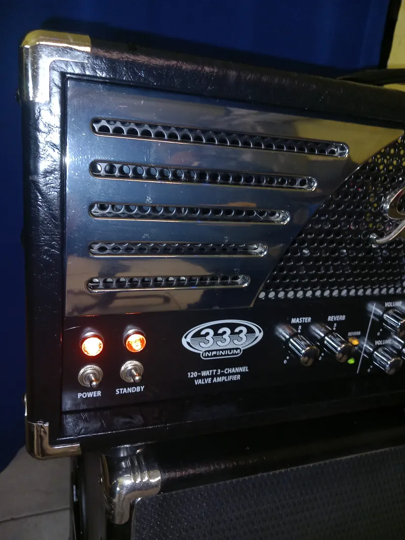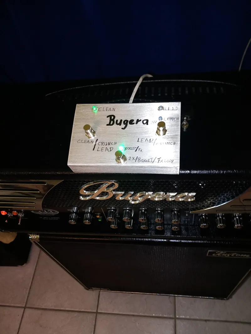 Eladó a képeken látható megkímélt szép állapotban lévő, után gyártott 3-as lábkapcsó, Bugera 333, 120.Wattos csöves Infinium fejhez lehet használni 5 pólusú dugóval rendelkezik.