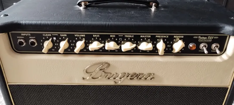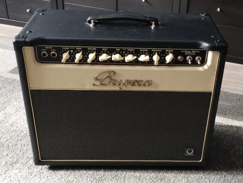 Kihasználatlanság miatt fájó szívvel eladó Bugera V22 full csöves gitár kombóm. Nagyon megvigyázott, csak szobában használt gyakorlásra, első tulaj, a lenti videóban bemutatott hangszerboltban vettem. Gyári védőhuzatával, láb kapcsolóval.Butik-stílusú 22 Wattos retro csöves gitárkombó, reverb effekttel.