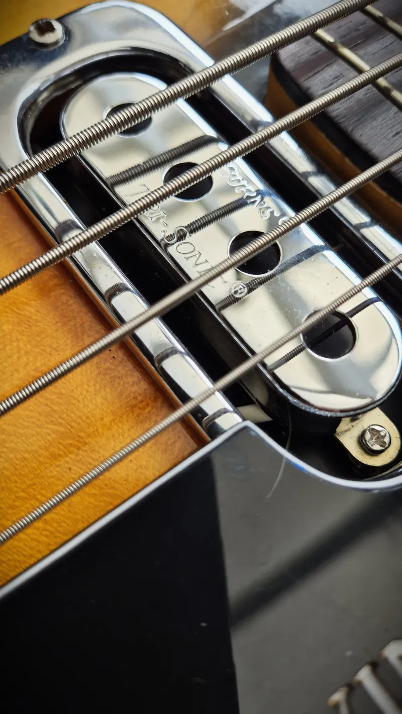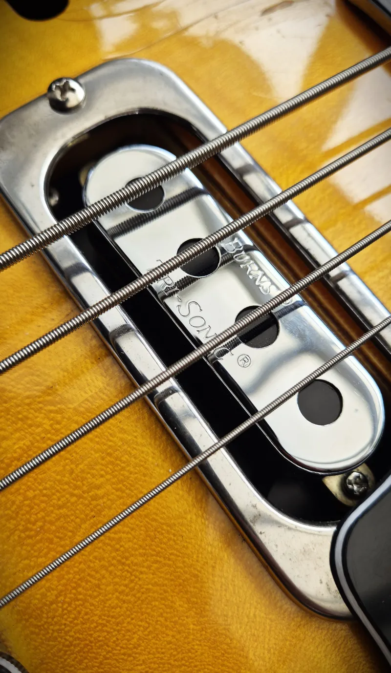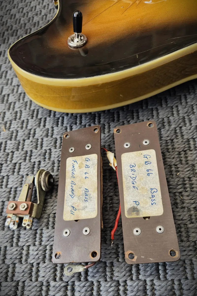 Upgrade: Az eredeti hangszedőket Burns Tri-Sonic pickupokra cseréltem, mert ezek ki vannak viaszolva, és jobban is szólnak. Adom hozzá az eredeti pickupokat is.