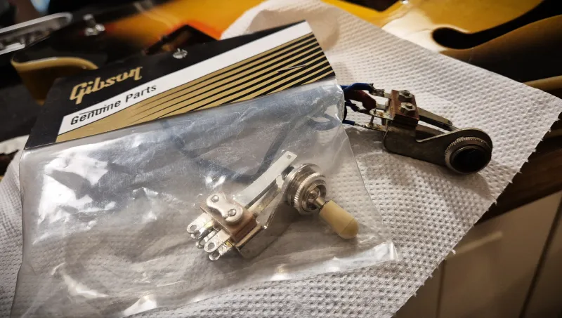 Pickupváltó kapcsoló Gibsonra lecserélve. (Adom az eredetit is)