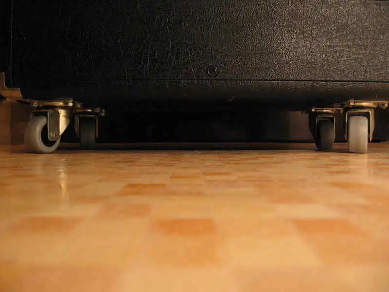 Az erősítő négy darab minden irányba forduló keréken gurul, s az oldalán hordozó fogantyú található, hiszen a kombónak igen tekintélyes súlya van (ebben még van anyag).