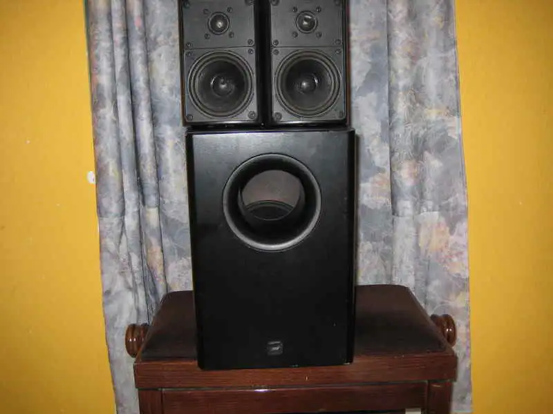 Két tekercses mély hangszóró ,passzív leválasztás a satelit hangfalaknak.