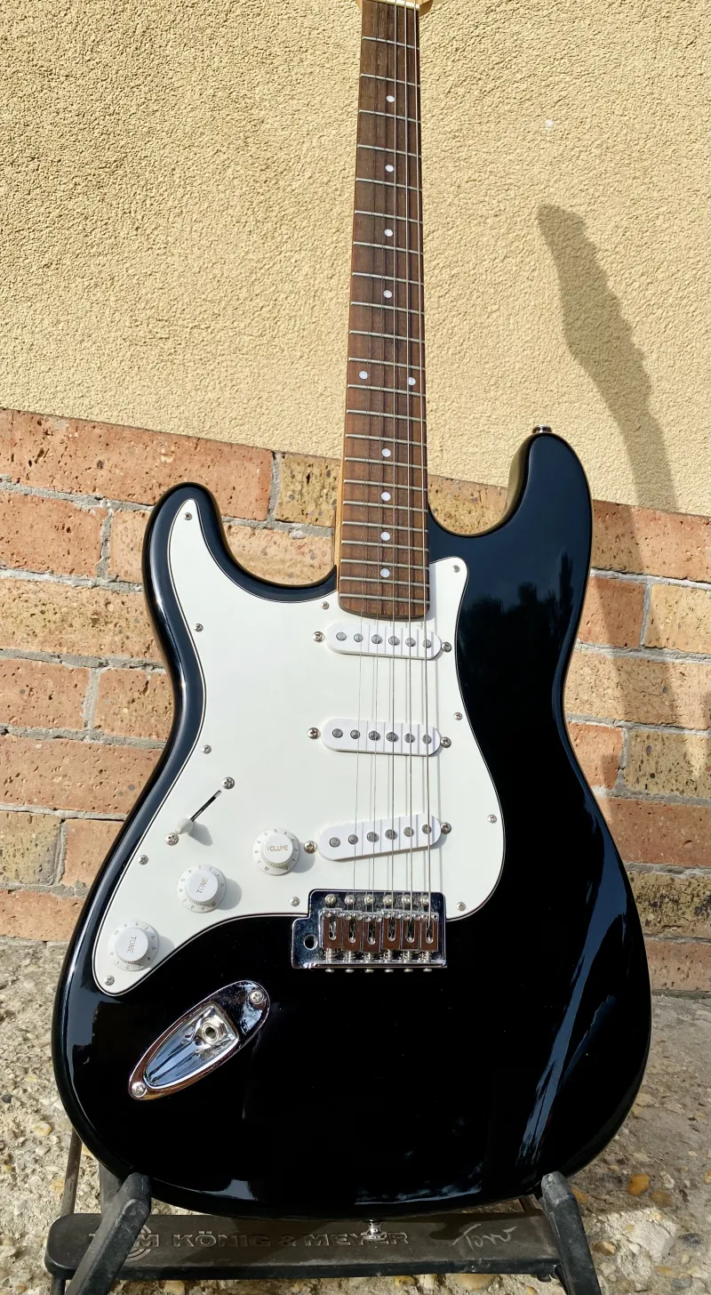 Eladó újszerű állapotú balkezes fekete stratocaster.Dögös hangja van,szinte minden stílusban megállja a helyét,nyaka frissen beállítva így a húrnyomása alacsony.
