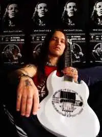 huendeskeseladóvá vált Farkas Zotya.gitárja dedikált példány.