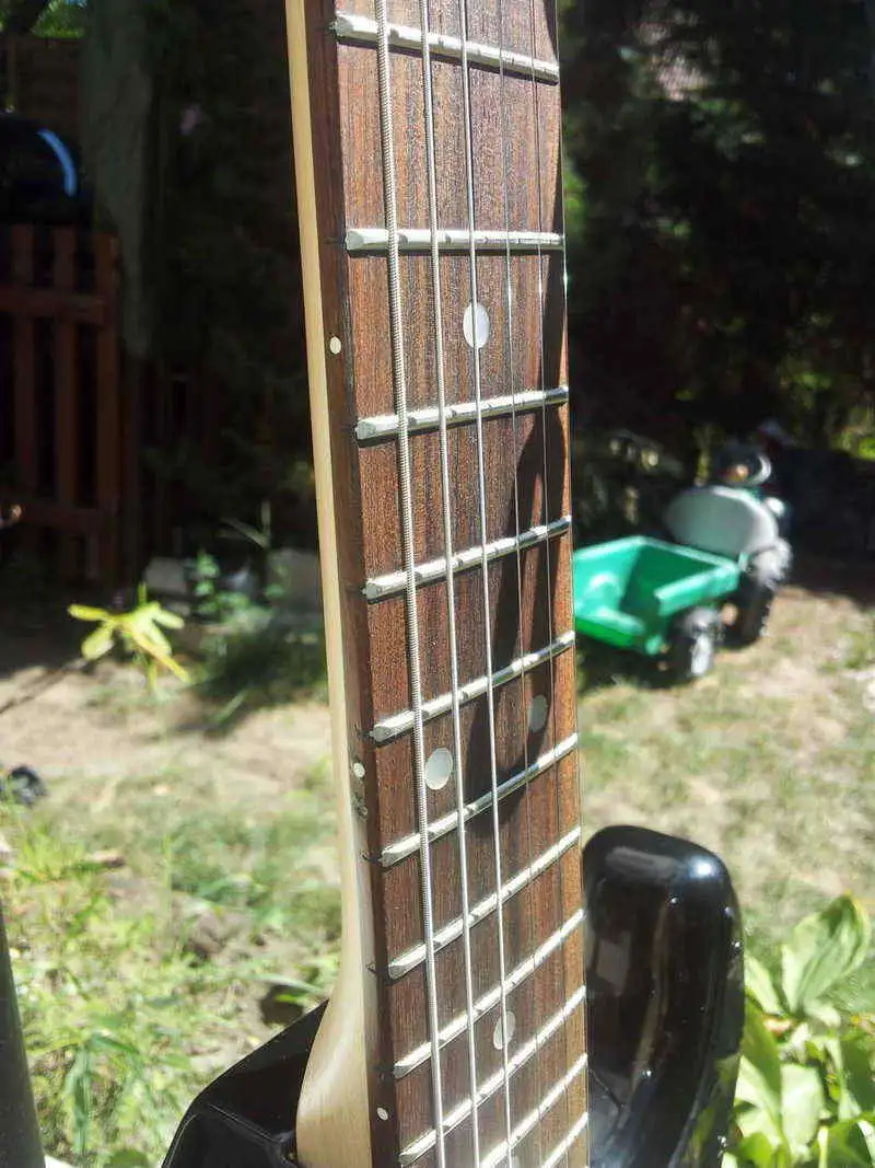 Oktáv beállítva, húrmagasság optimalizálva, bundok, elektronika rendben.