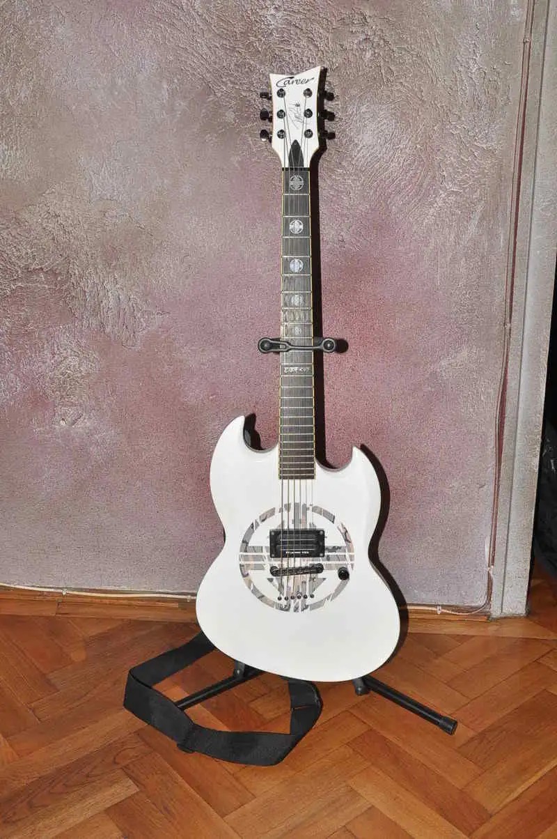 Tudni kell róla, hogy a gitár egyedi készítésű, személyre szabottan Farkas Zoltánnak készült (Ektomorf) és használta egy darabig. A gitárt a fej hátulján dedikálta.