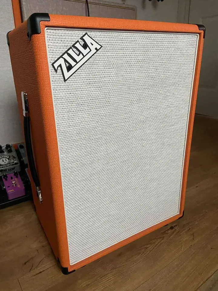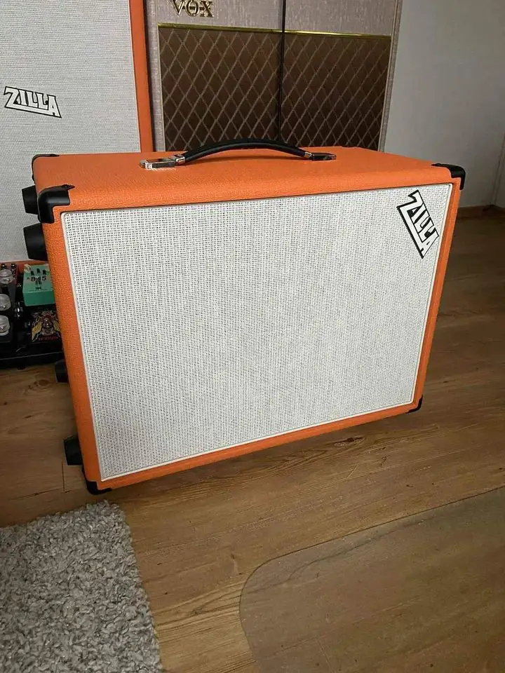 Eladó ez a kis gyönyörűség: custom made Zilla Cabs Ported 1x12 láda (www.zillacabs.com a hozzá való 16 ohmos Celestion G12H-75 (celestion.com hangszóróval. Highend cucc, made in UK.A láda egyedi tolexet kapott a Zillánál, ami passzol az Orange erosítőkhöz (a Terror vagy az OR15 fejek pont hozzá valóak), használhatod függőlegesen vagy vízszintesen, kicsi és könnyen mozgatható (bár a heavy magnet Creamback nem kimondottan könnyű darab:), a ported design miatt nagyobbat szól, mint egy hasonló méretű zárt láda.