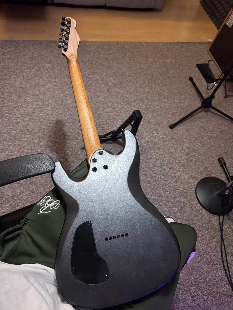 Szürke színű. Eladò kihasznàlatlansàg miatt. Egyetlen kis karc van rajta, a fotòk között làthatò. Az indexkêpen kicsit kékes a színe a szobàban lêvő led miatt, de szürke színű a gitàr.Kapcsolódó hangszerteszt