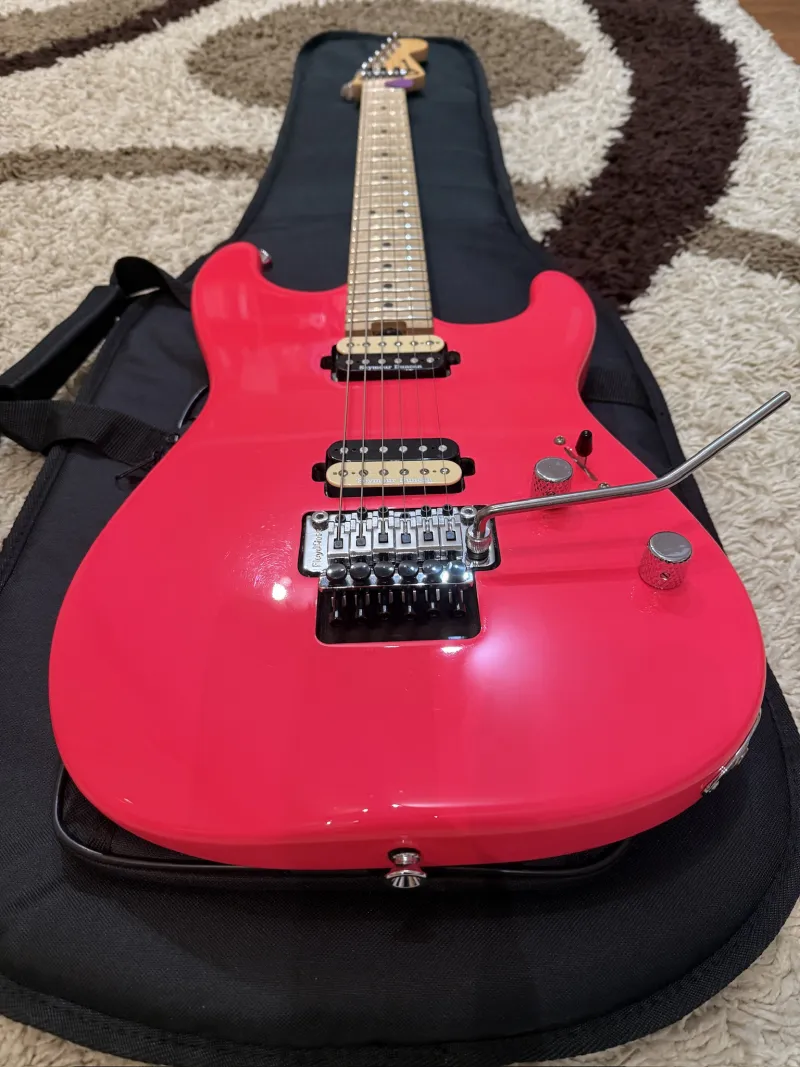 🎸 Eladó: Charvel San Dimas Style 1 HH FR (2016) - Neon PinkProfesszionális minőségű, USA‑stílusú hot‑rod gitár, amely a ’80-as évek ikonikus megjelenését ötvözi a modern játékélménnyel. A hangszer hibátlanul működik, és minden részletében a gyors, precíz játékot szolgálja.