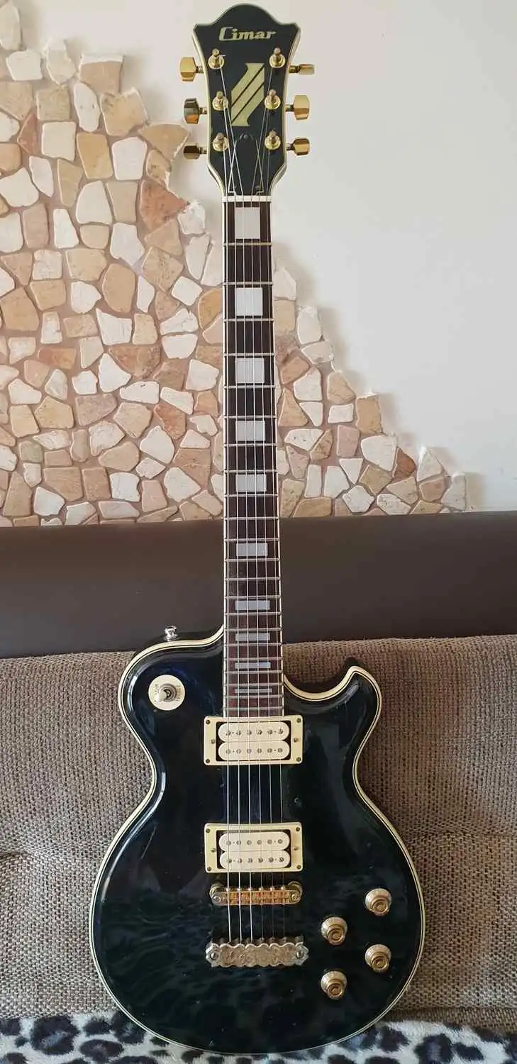 Cimar Les Paul Custom, Made in Japan, 80-es évek beli, szép állapotban, Dimarzio D-Activator és Japan Orwille hangszedőszettel.
