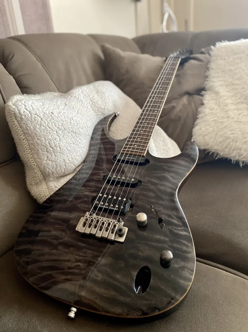 Eladóvá vált szeretett Cort Aero Custom gitárom. Sok koncetret látott, de a hátulján található két kisebb bemélyedésen, a potisapkák kifényesedésén és a termolókar hiányán kívül nincs más hibája. Szépen tartja a hangolást és a Seymour Duncan hangszedőknek köszönhetően bitang jól szól tiszta hangszíntől high-gainig.
