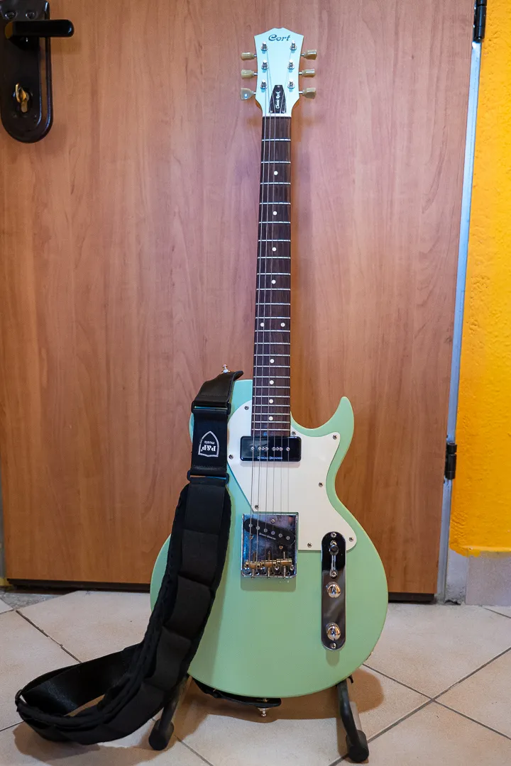 Cort CR-LTD16 limitált szériás elektromos gitár új állapotban eladó. Már nem gyártják! Hangszerész által beállítva. Különleges kialakítása a Les Paul és a Telecaster gitárok ötvözete. Ajándék vastag vállpánttal strap lock hevederzárral és vékony tokkal. Ideális blues, surf, rockabilly zenéhez.Konstrukció: csavarozott nyak