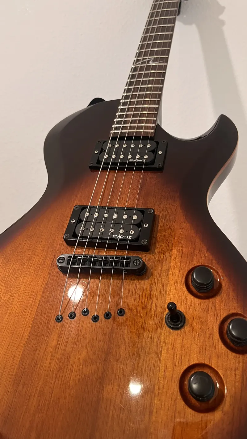Hangszercsere miatt eladó egy gyakorlatilag új, karcmentes, ˝szalonállapotú˝ Cort Zenox Z44 gitár. Mahagóni test és nyak, rózsafa fogólap, EMG-HZ humbucker hangszedők, felezhető hangszedők a single-coil hangzáshoz. Húrok átmennek a testen, ezért hosszú hangtartás (sustain). Hangszerész által beállítva.Kapcsolódó hangszerteszt (14)