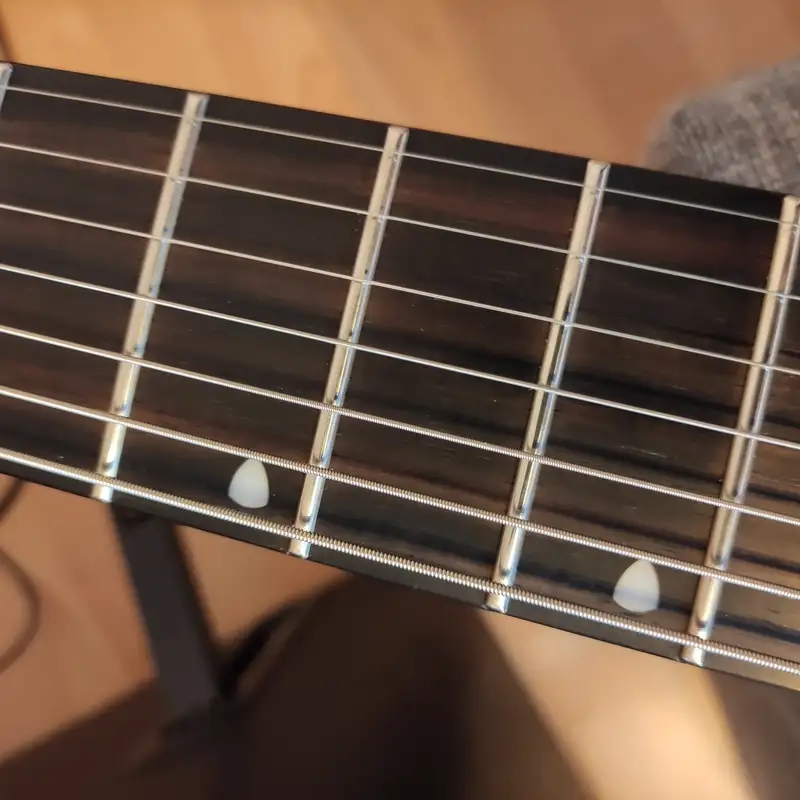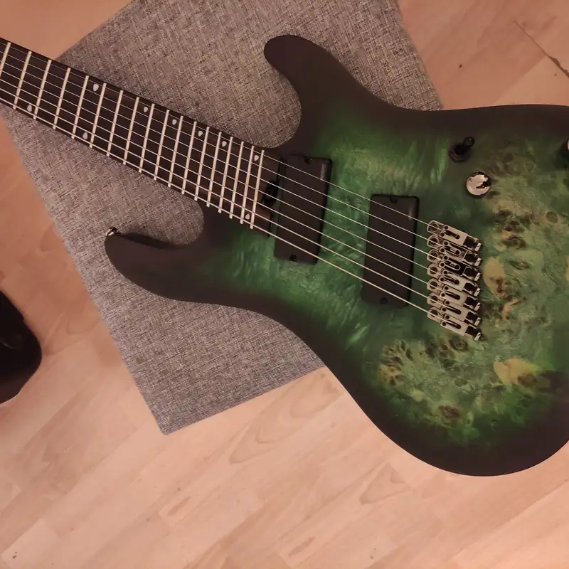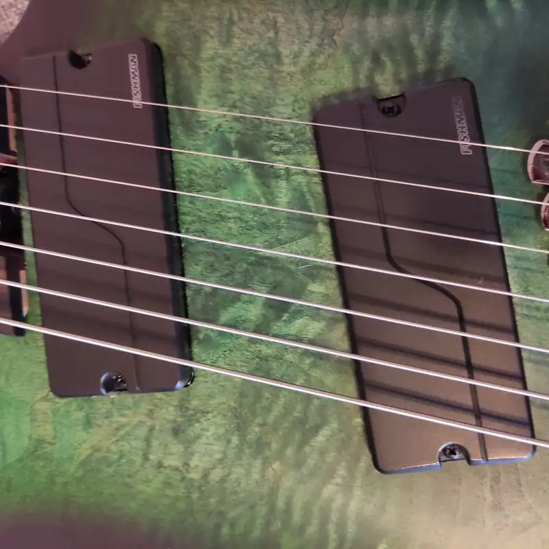 7-húros, legyező bundos Superstrat gitár, Fishman Fluence hangszedő, fix húrláb