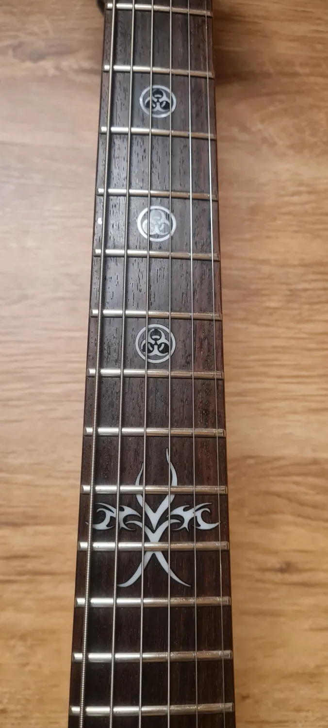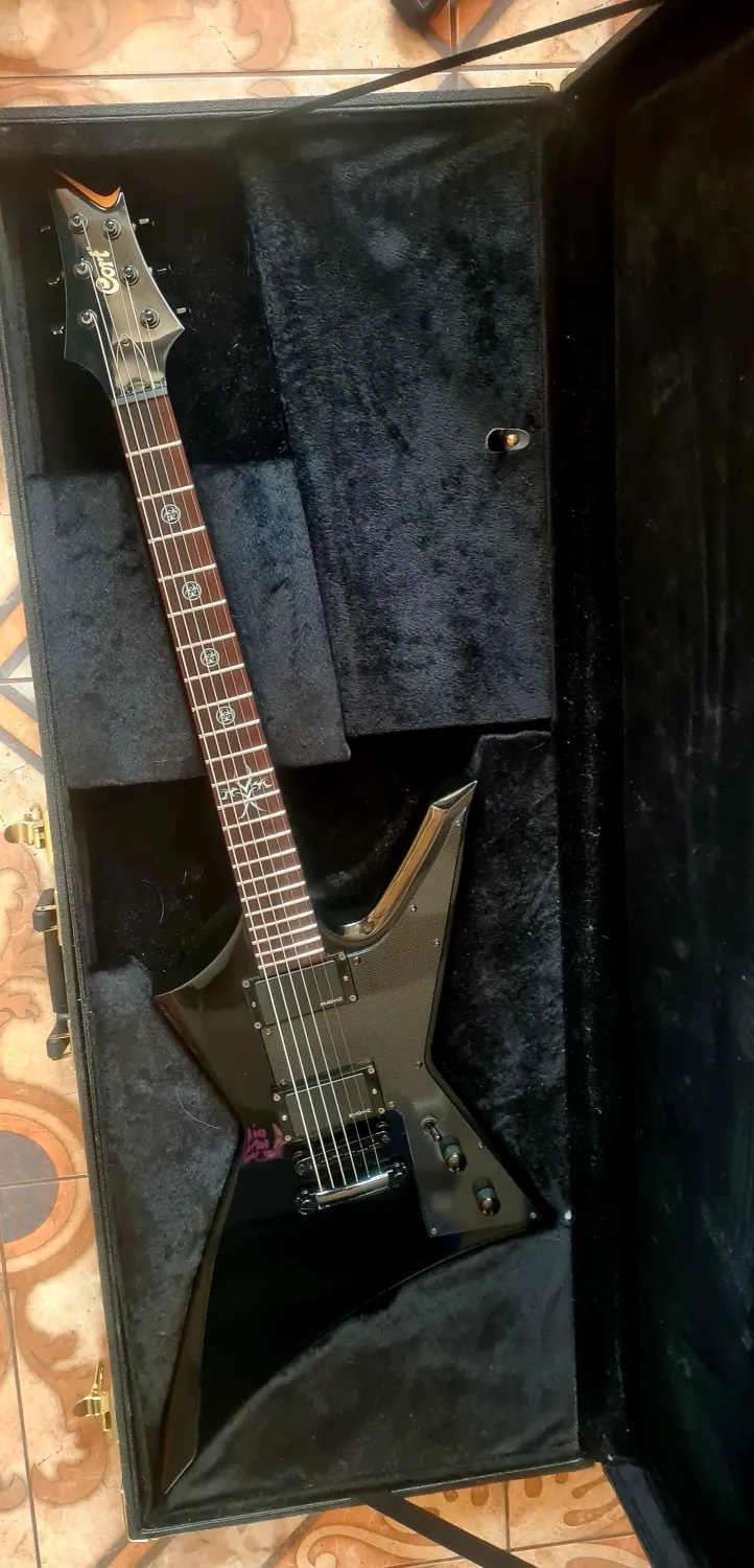 Cort VX-4X Explorer elektromos gitár, újszerű, beállított állapotban, új D`addario 13-62 húrokkal szerelve!Szép kidolgozás,(ritkán látni ilyen kidolgozású explorert) mahagóni test, ragasztott nyak, EmgHz hangszedők, 100% bundok, D drop hangolás!