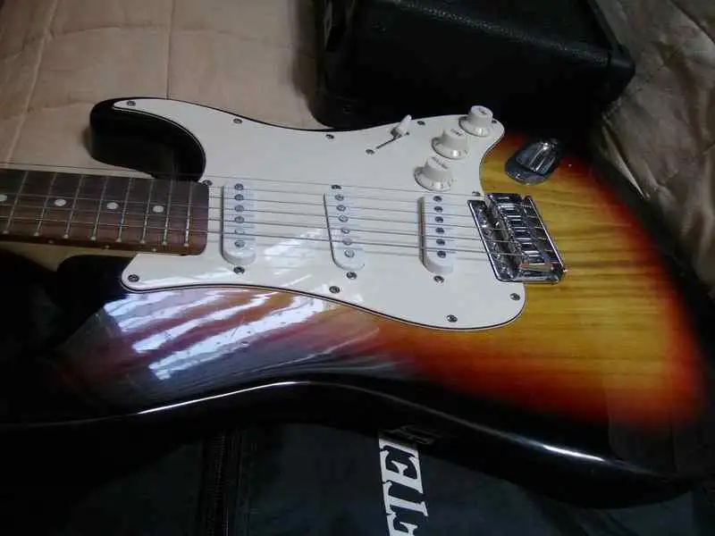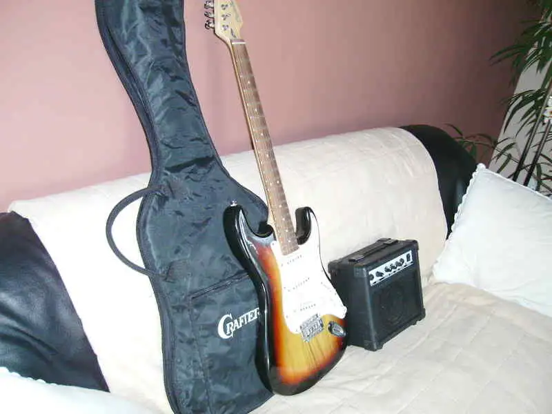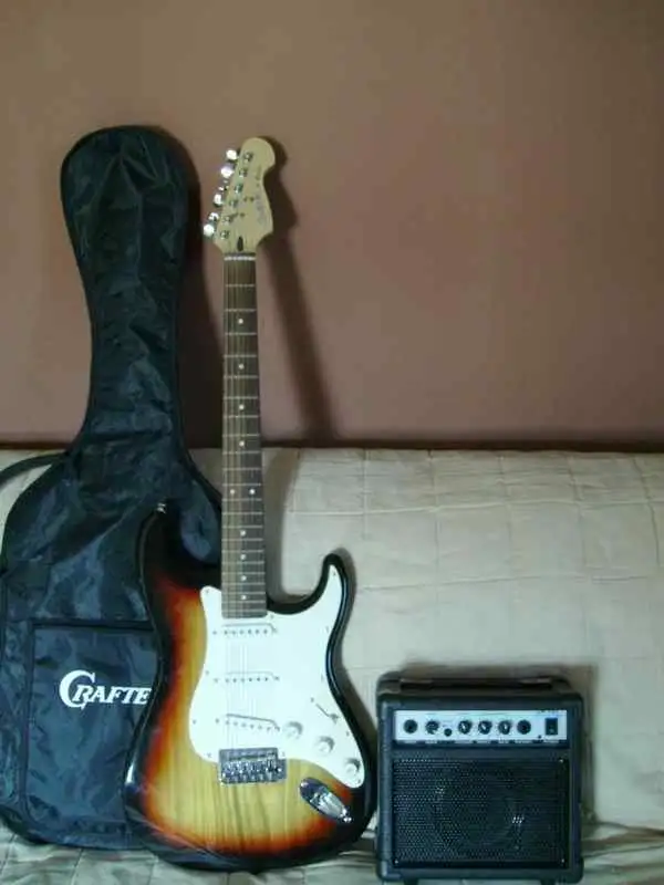 huendeskesEladó Komáromban a képen látható elektromos szólógitár gyöngyvászon tokkal, jack kábellel, erősítővel, tremoló karral. Kifogástalan állapot, jó hangzás. Az erősítőben beépített EQ + torzító van. Otthoni zenélésre használtam. Próbákra könnyen szállítható. Külön a gitár 15.000 Ft, az erősítő 10.000 Ft, EGYÜTT: 20.000 Ft