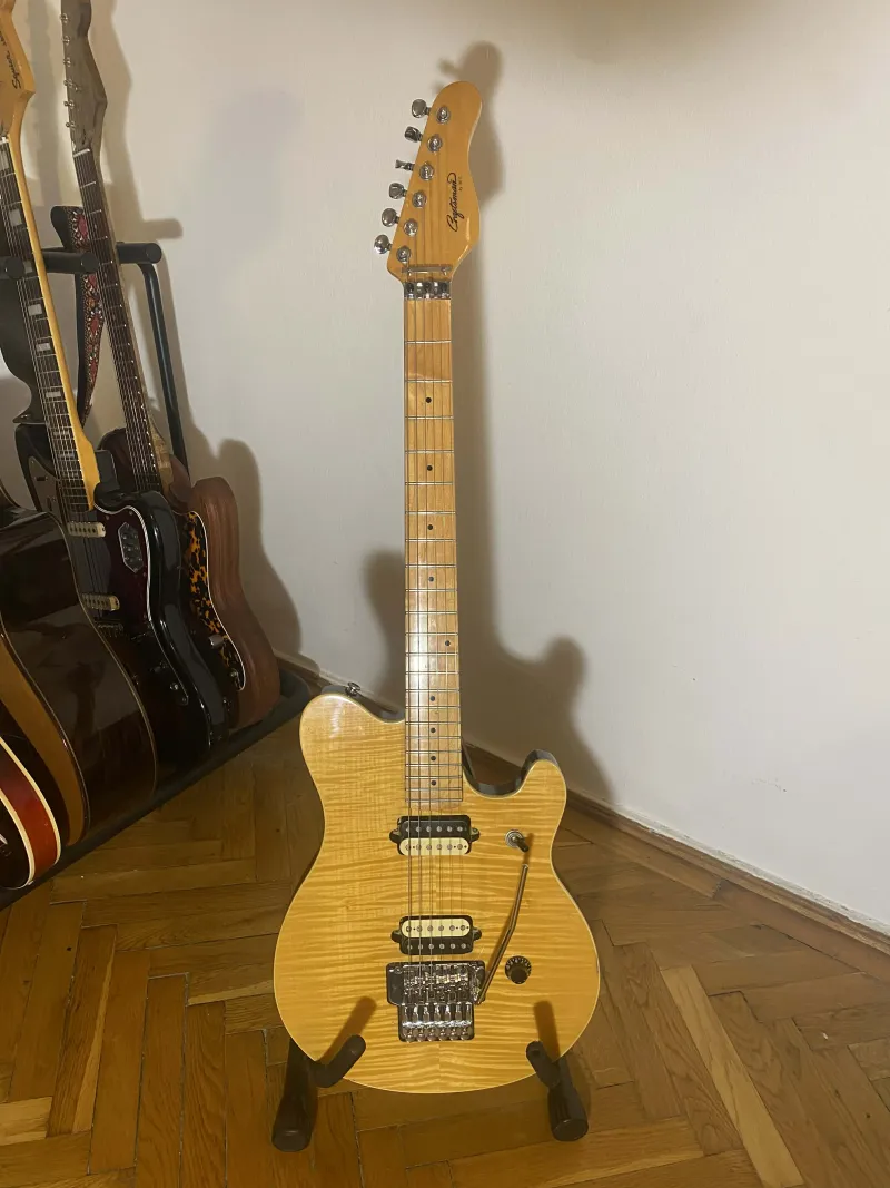 A Floyd Rose természetesen nem eredeti, de hibátlanul működik.