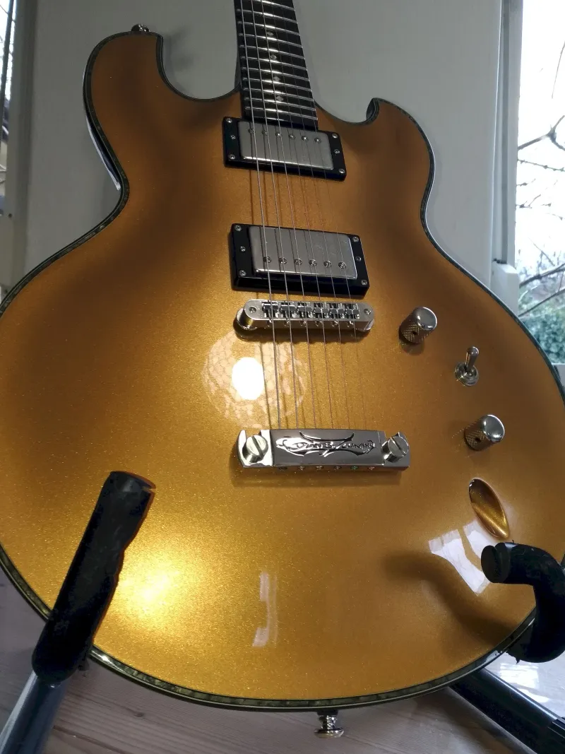 DBZ Imperial Gold: különleges, kényelmes, minőségi (PRS SE felett) hangszer, ami 2012-ben az akkori NAMM Show-n elnyerte a ˝Legjobb új elektromos gitár˝ díjat. Jazzgitár méretű, de Ibanez S-szériás vékonyságú test. Profi szivacsos tok jár hozzá. Beszámítás lehetséges.Szállítás