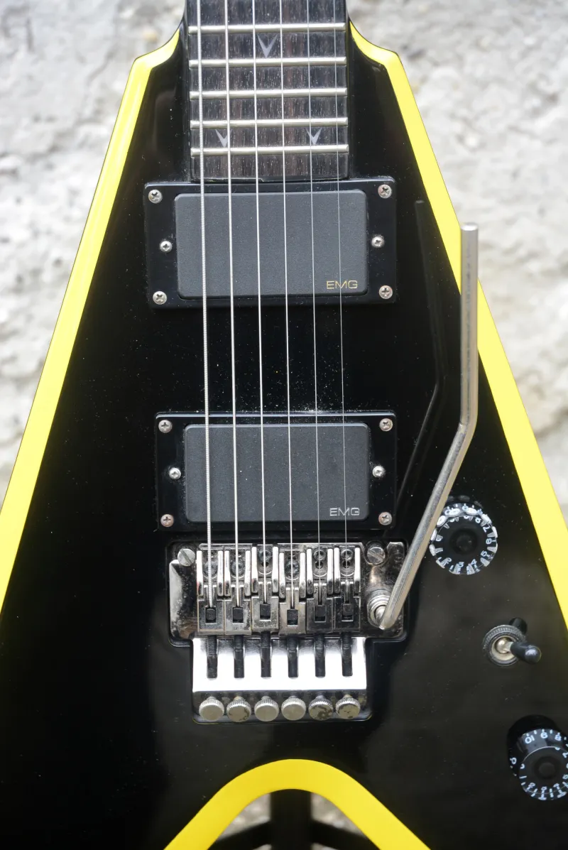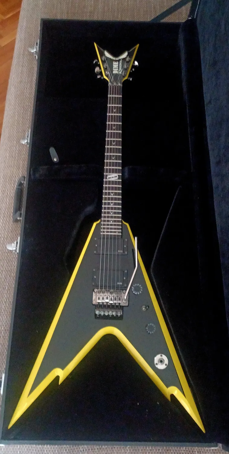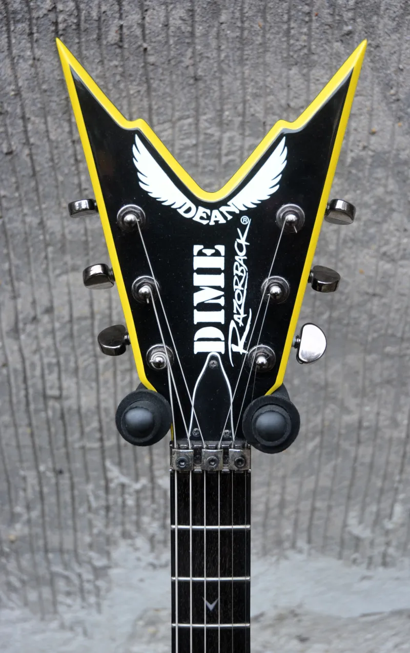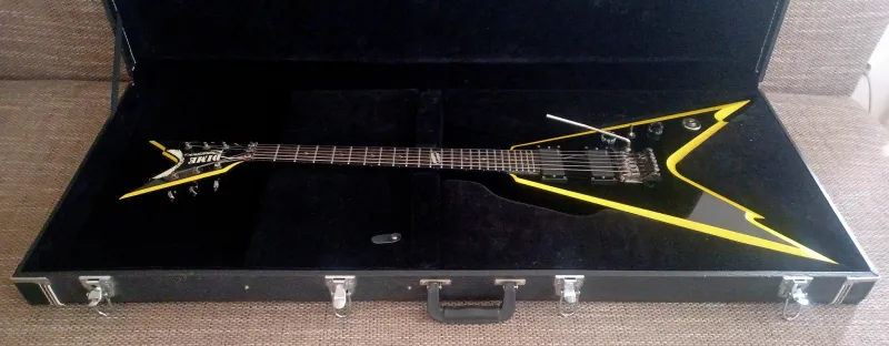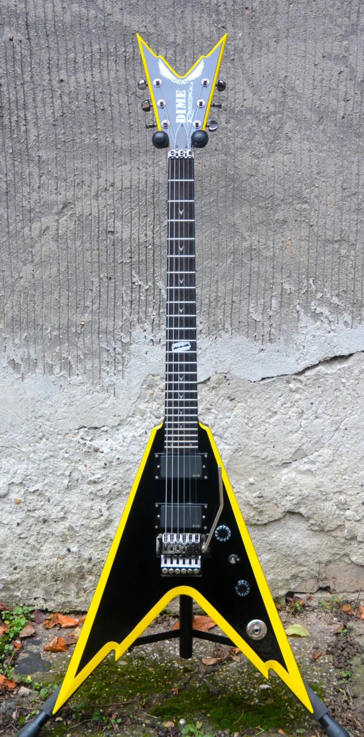 Dean Razorback V255 Dime elektromos gitár (Made in Korea 2007) karcmentes tökélets állapotban, gyári keménytokkal. Mahagóni test, ragasztott mahagóni nyak, rózsafa fogólap, EMG 81-85 aktív hangszedők, Grover kulcsok, Floyd Rose tremoló.Kapcsolódó hangszerteszt