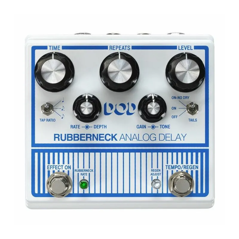 Kettő lábkapcsoló segítségével egyéni kiegészítő funkciók is elérhetőek, úgymint a felhasználó által egyénre szabható oszcillációs sebesség, Rubbernecking glisszandójának pillanatról pillanatra való vezérlése. Ezeket a kibővített funkciókat egyenként vezérelheted könnyen áttekinthető pici gombokkal, amelyek másik funkciója a működés állapotának jelzése beépített LED izzókkal. Vezérlők: Time, Repeats, Level, Tap Ratio, Rate/Depth, Gain/Tone, Tails, ki/be kapcsoló