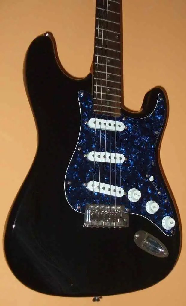 Sajnos a feliratot lekaparták, de közelről el lehet olvasni. Mint a képeken is látszik, szép kis hangszer. Kezdő, haladó zenészeknek ajánlom. A gitár be lett állítva: nyak, hangszedők, húrmagasság stb. Nagyon jól játszható strattos hanggal. Elsősorban eladni szeretném, de csere is érdekelhet.