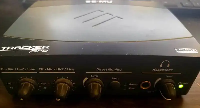 Eladó egy 2 be-/2 kimenetes E-MU Tracker Pre hangkártya, ami kb. egy Focusrite Scarlett 2i2 tudásával rendelkezik, fejhallgató erősítővel, és direct monitoringgal.
