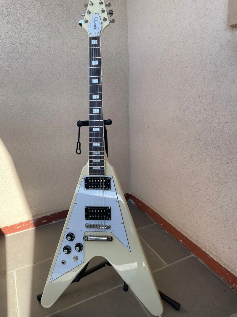 Eladóvá vált Edwards Flying V gitárom (made in Japan) , BALKEZES kivitelben. Az eladó oldal közölte, hogy ez az utolsó termék, amit kaptam mivel kivezették a gitár gyártását.
