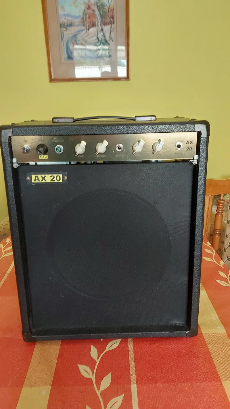 AX 20 csöves gitárkombó a Marshall 1917 20 Watt P.A. erősítőnek a kapcsolási rajza alapján egyedileg, forléces szereléssel, kézi huzalozással /ponttól-pontig/ elkészített és gondosan bemért másolata, gyári kombó dobozban az AE 782/A csöves erősítő trafóival, VOX Custom 12˝-os hangszóróval, új orosz katonai csövekkel (előfokban 6N2P-EV és párba válogatott 6P14P-E a végfokban).