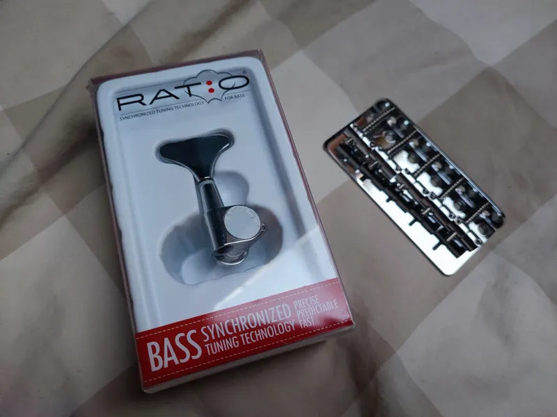 Adok hozzá egy hevedert, egy vastag vállpántos RockBag tokot és az eredeti alkatrészeit (bridge, hangolók, hangszedők).