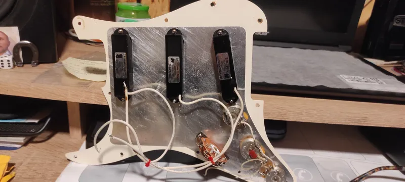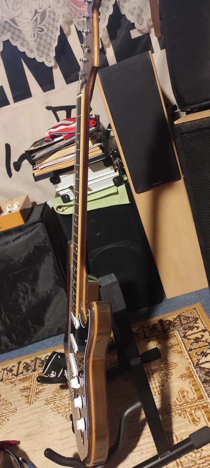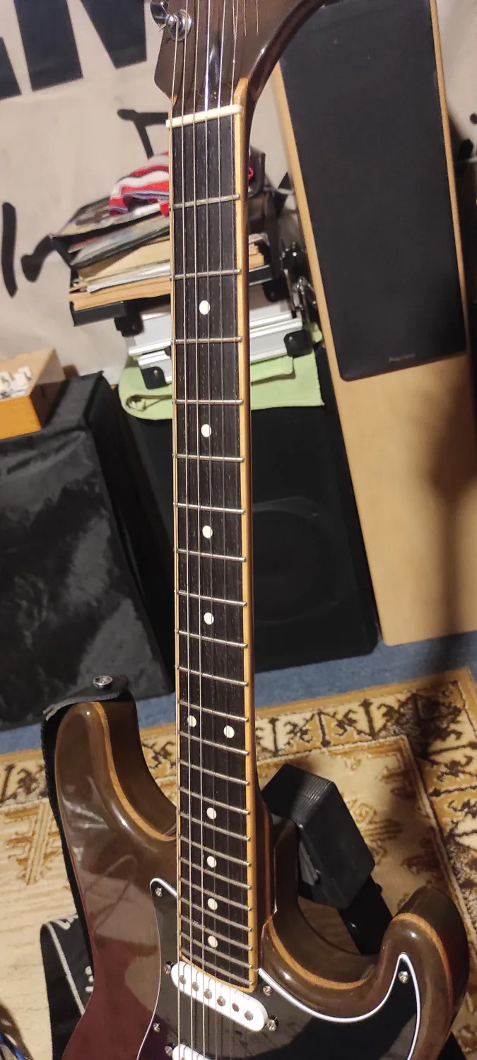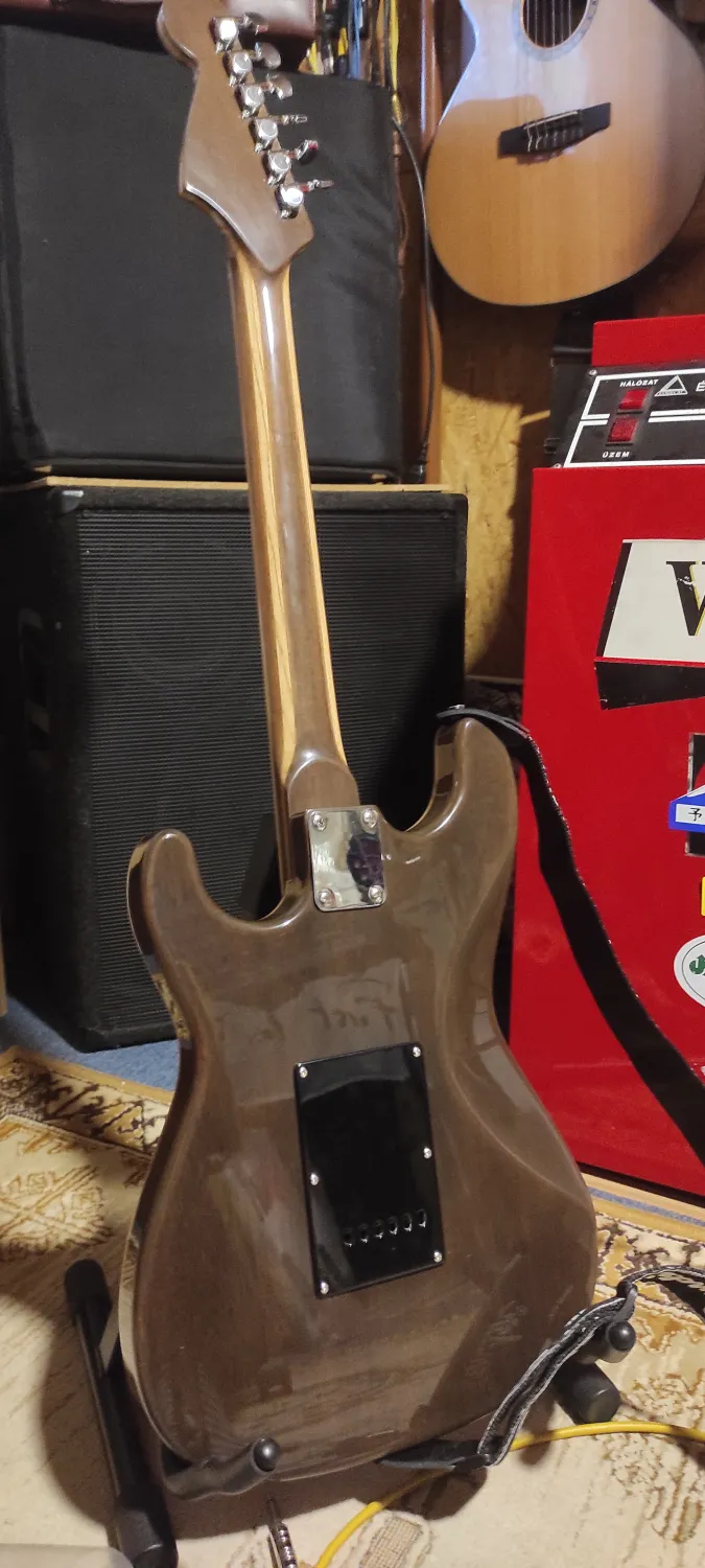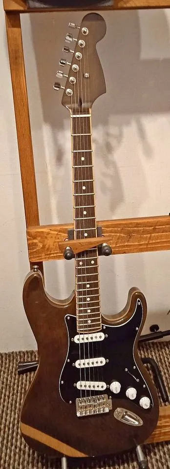 Kézzel készített egyedi stratocaster gitár, nem kész elemekből összerakott, hanem kézi munkával készült. Anyaga: Amerikai dió (walnut), mocsári kőris berakás. A nyakon a bind is kőris fából van, nem műanyag. EMG hnagszedőkkel szerelt.