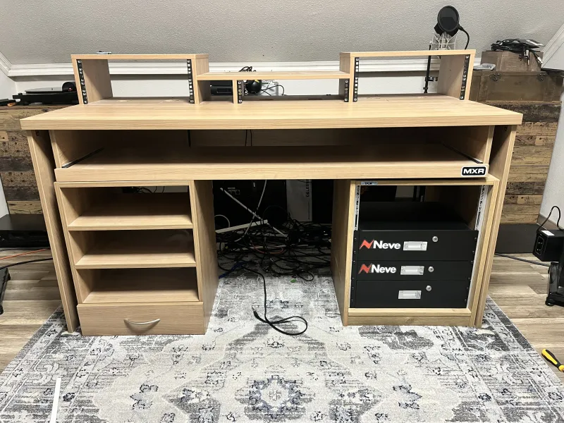 Eladó egy egyedileg gyártott stúdio asztal. 4+4+2 rack unit, kihúzható tálca ami bármely 88 billentyűs szintihez, zongorához alkalmas (Juno ds88 volt benne). Az asztal rendkívül stabil, a képen látható polcos kiegészítő bútor jár az asztalhoz, hifik vagy bármilyen standard hifi méretű elektronikák elhelyezéséhez hibátlan.Kapcsolódó hangszerteszt
