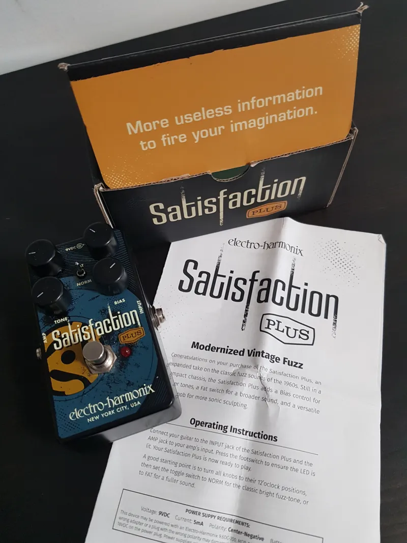 Ha a legendás ’60-as évek Tone Bender-szerű fuzz hangzását keresed, de szeretnél hozzá mai használhatóságot és rugalmasságot, a Satisfaction Plus jó választás lehet.Az EHX Satisfaction Plus egy klasszikus fuzz pedál modern vezérléssel. Erőssége, hogy nem csak egy fix, agresszív fuzz hangja van: a Bias és Voltage potikkal és a norm/fat kapcsolóval jól szabályozható, mennyire legyen nyers, karcos vagy épp visszafogottabb a torzítás.
